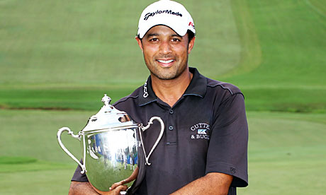 Arjun Atwal, above, made history last night when he won the Wyndham Championship by one stroke to become the first Indian to win on the PGA Tour. Atwal, 37, who started the final round with a three-stroke lead, secured victory by sinking a pressure-packed putt for par from seven feet at the final hole.